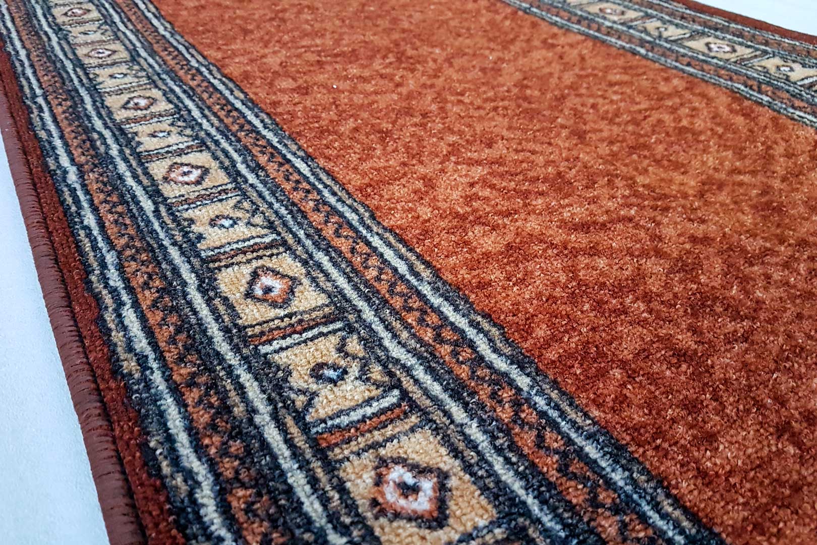 La bordatura originale, ove prevista, è presente ai soli lati lunghi, mentre ai lati corti viene lasciato il taglio netto. Le nostre passatoie sono composte da materiali resistenti e sono da noi tagliate con molta accuratezza e trattate appositamente per evitare che il bordo si possa sfilacciare nel breve e medio periodo (dipende dalla normale usura della passatoia nel tempo). Su richiesta è possibile aggiungere bordi di rifinitura, sono disponibili varie tipologie in base alle esigenze e al prezzo.