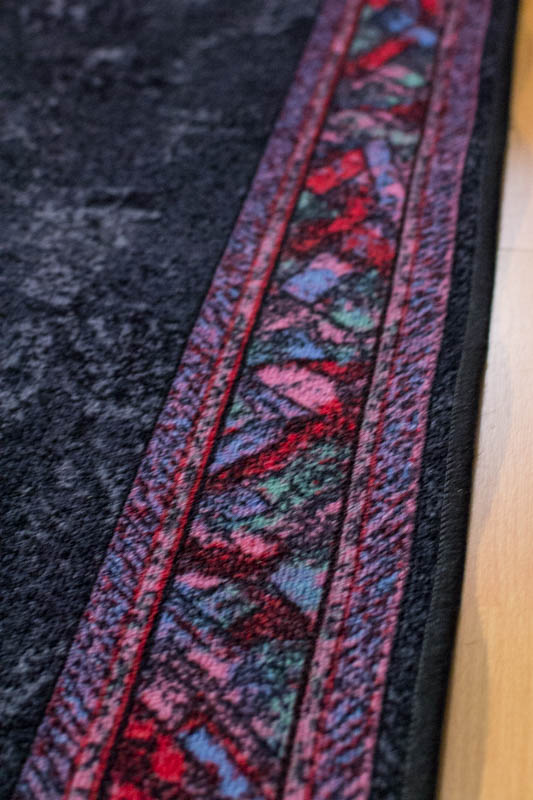 Bordatura a filo originale ai lati lunghi, ai lati corti il tappeto è tagliato di netto. Il taglio è trattato per non sfilacciare.